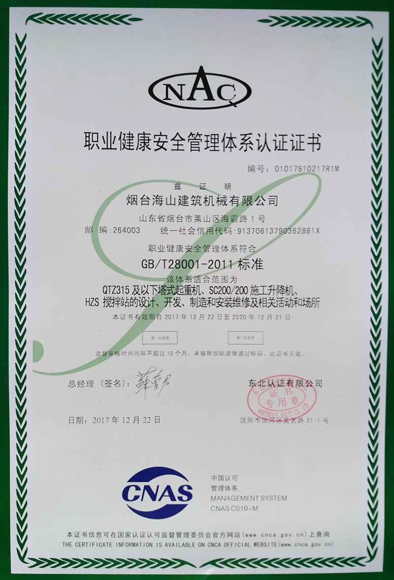 煙臺(tái)海山建筑機(jī)械有限公司坐落于山東省煙臺(tái)市高新技術(shù)開發(fā)區(qū),占地面積160000多平方米,目前擁有1200余名員工。秉承誠(chéng)信·勤奮·執(zhí)著·創(chuàng)新的企業(yè)發(fā)展理念,以人才·質(zhì)量·管理·服務(wù)為企業(yè)發(fā)展途徑...
